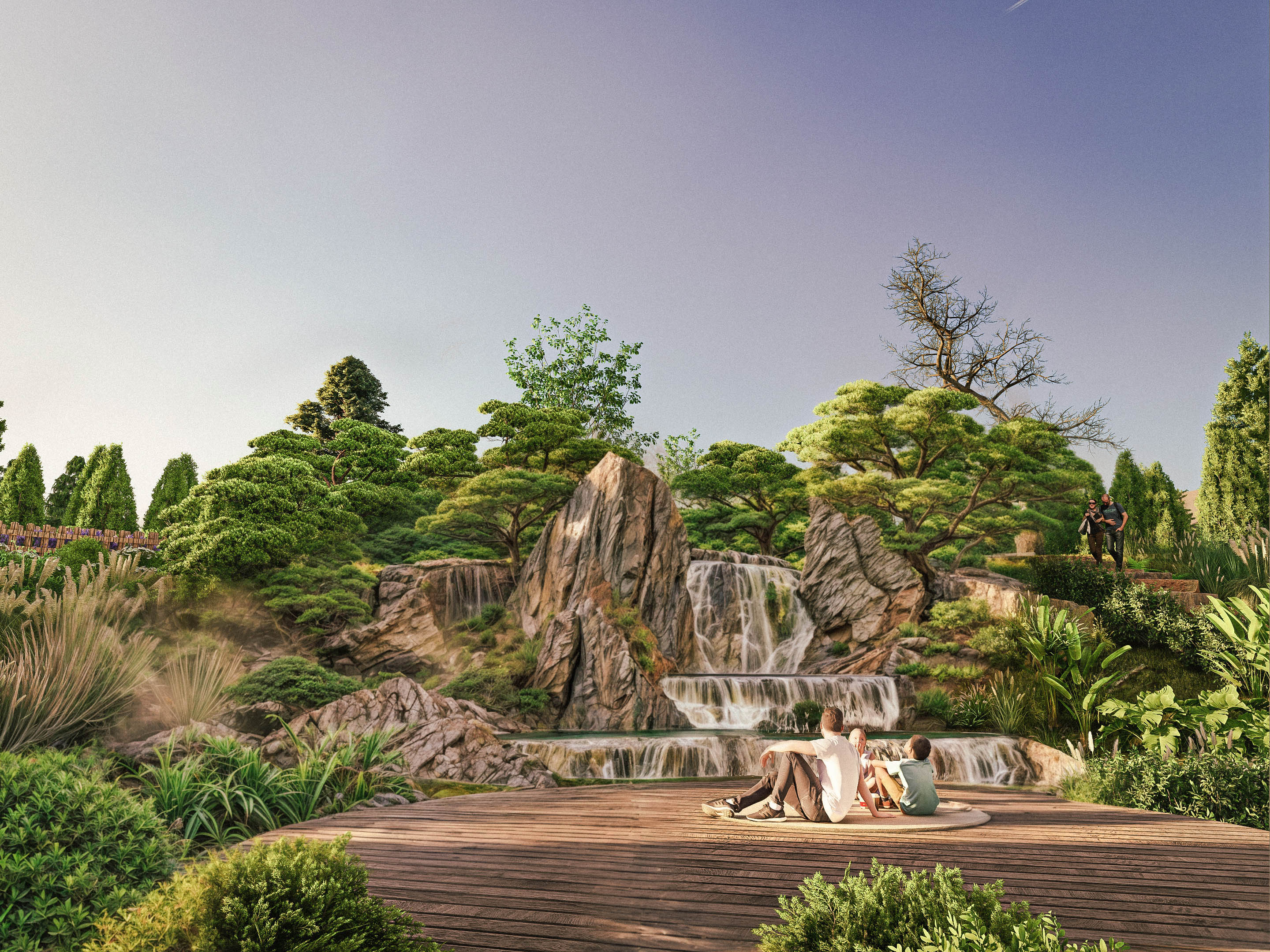 Phương Ly Garden không chỉ là một công trình kiến trúc mà còn là một tác phẩm nghệ thuật hòa quyện với thiên nhiên. Các loại cây xanh được lựa chọn kỹ lưỡng, từ những cây cổ thụ đến các loại cây bụi, tạo nên một không gian xanh mát và trong lành. Thác nước nhân tạo được thiết kế tinh xảo, mang đến âm thanh róc rách dễ chịu, giúp thư giãn sau những giờ làm việc căng thẳng.